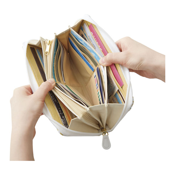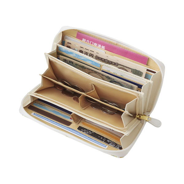 通帳も入る大きさ、コイン4分別の仕切付き、36枚以上のカードも入り大容量で便利な収納機能がもりだくさん!