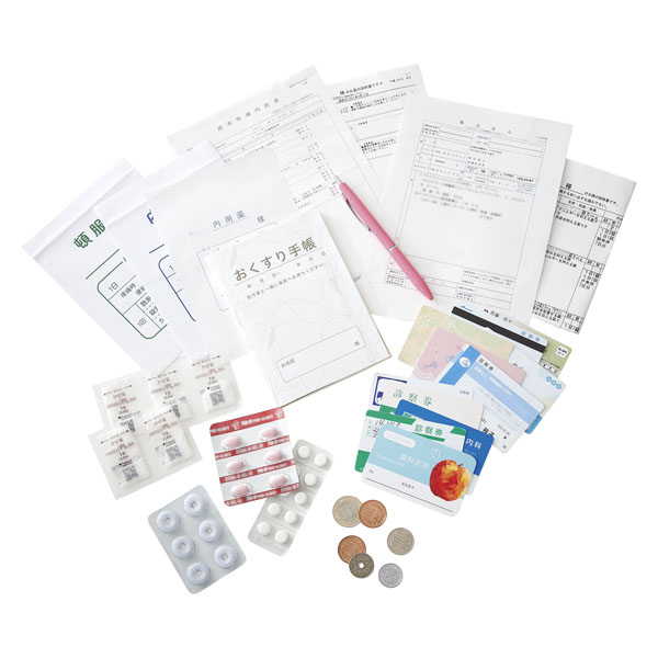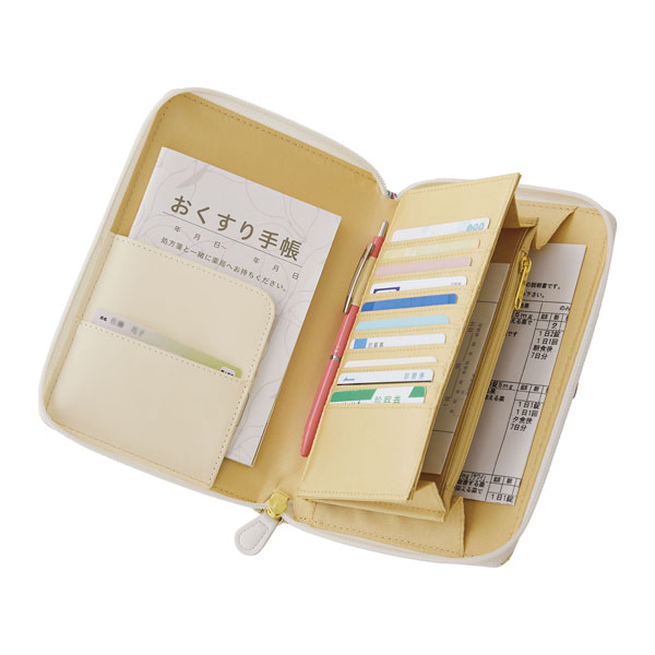 お薬手帳・診察券・ペン・メモなど病院関係の小物がスッキリひとまとめに入れられます。