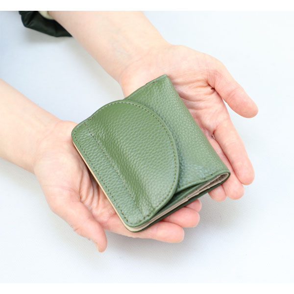 • アイザック・バレンチノ訳アリ牛革コンパクト財布 オリーブ