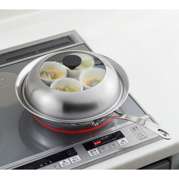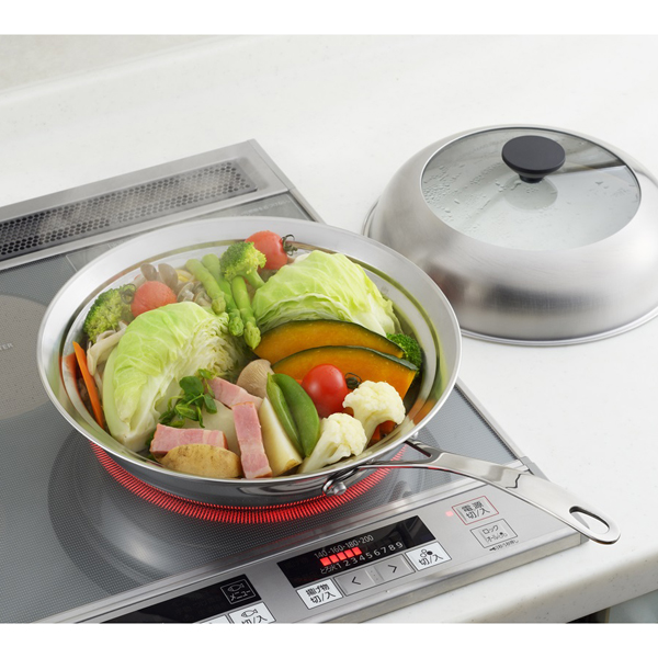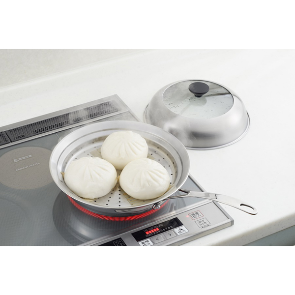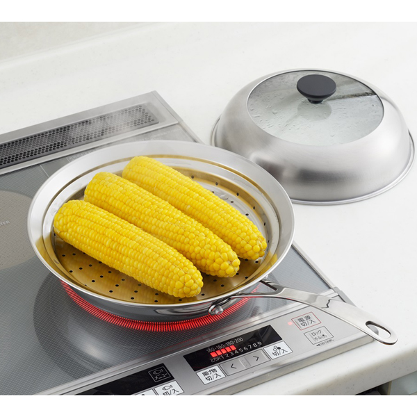 【お得】蒸し処 ステンレス製ガラスフタ付深型兼用鍋22cm(目皿付)
