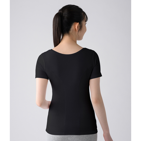 血行促進繊維VITALTECH(R)を使用した生地を二重にした「Wバイタル構造」により、肩コリ・腰コリを改善。服の下に着るだけでコリに集中アプローチ。肩や腰のコリ改善をかなえるインナーです。