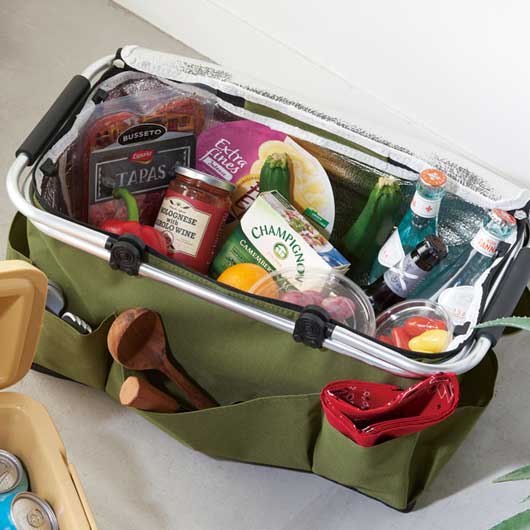 たくさんのポケットがうれしい!おしゃれで丈夫なアルミフレームの保冷温バスケット。
