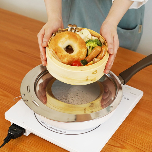1~2人分の点心や野菜を蒸したりと普段使いにピッタリな18cmサイズ。